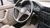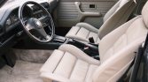 The cabin features manually-adjustable sport seats that have been reupholstered in tan vinyl with matching door panels and carpets. Amenities include an onboard computer, air conditioning, power windows, and a BMW cassette stereo.