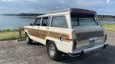 This 1987 Jeep Grand Wagoneer is said to have been delivered new to Herbert Motors in Longmont, Colorado, and spent several years in Texas before being acquired by the seller in 2021. The truck is finished in beige with with woodgrain paneling over maroon leather upholstery and is powered by a 5.9-liter V8 mated to a three-speed automatic transmission and a dual-range transfer case. Equipment includes LED headlights, driving lights, a roof rack, cruise control, air conditioning, a power-retractable rear window, and an aftermarket head unit that features a backup camera and Bluetooth.