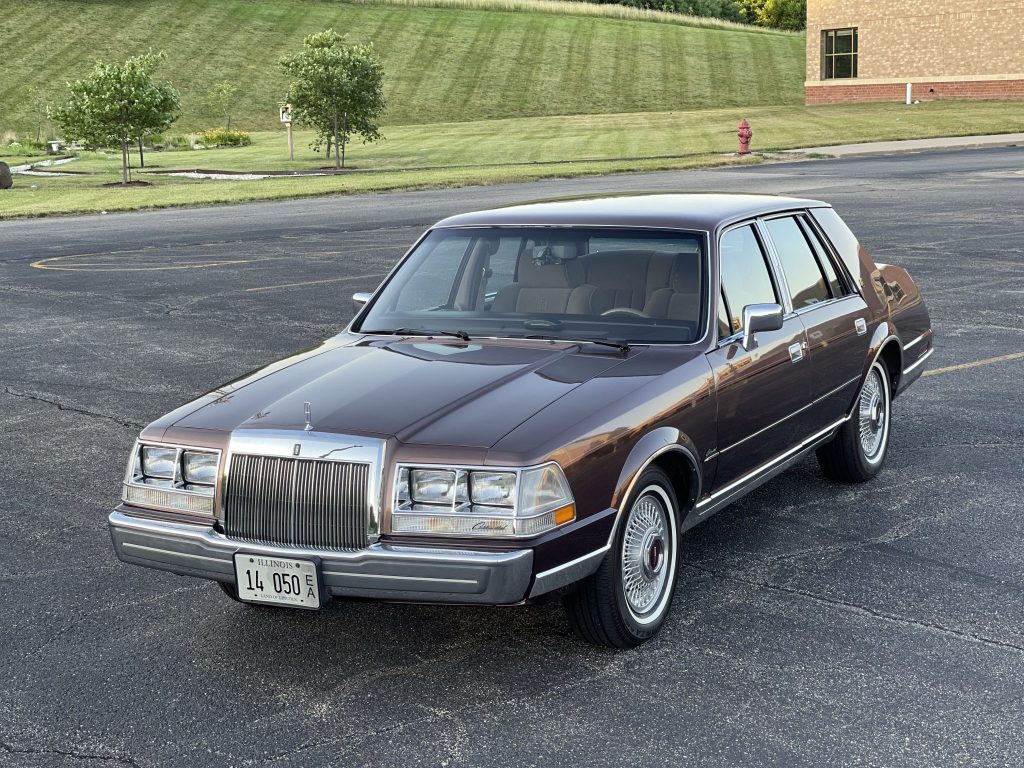 This 1987 Lincoln Continental is a Givenchy Designer Series example finished in two-tone Rose Quartz and Dark Taupe Glamour paint over Taupe cloth upholstery and powered by a 5.0-liter V8 paired with a four-speed automatic transmission. Features include Continental lettering over the rear bustle-back trunk, automatic climate control, an AM/FM cassette stereo, keypad entry, power accessories, and 15” wire wheels. The car was reportedly purchased new at Stadium Lincoln Mercury in Youngstown, Ohio, and spent time in Texas prior to being acquired by the current owner in 2014 and relocated to Illinois. An Edelbrock intake manifold and Flowmaster dual exhaust system were installed under current ownership, and an inspection and oil change were performed in preparation for the sale.