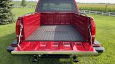 The truck is finished in red with polished lower trim. Additional details include chrome-finished bumpers, a hood ornament, tinted windows, sport mirrors, rain guards, bed rails, a Protecta Skid Gard drop-in bed liner, and dual bowtie-shaped chrome exhaust tips.