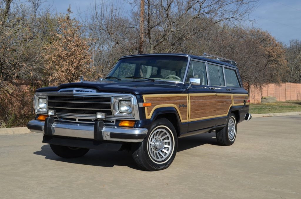 This 1991 Jeep Grand Wagoneer Final Edition is finished in blue over a beige interior and is powered by a replacement 5.9-liter V8 paired with a three-speed automatic transmission and a dual-range transfer case. A refurbishment under prior ownership reportedly included a repaint and the replacement of the upholstery and carpets. Equipment includes 15″ alloy wheels, power-adjustable front seats, an overhead console, air conditioning, cruise control, and an AM/FM cassette stereo.