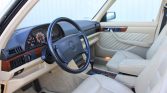 This 1991 Mercedes-Benz 420SEL is a one-owner car that was purchased in Greenville, South Carolina, and has been registered in North Carolina since new. The car is powered by a 4.2-liter V8 paired with a four-speed automatic transmission and is finished in black over tan leather. Equipment includes power windows and locks, driver and passenger front airbags, automatic climate control, a power-operated sunroof, power-adjustable front seats, Zebrano wood trim, and 15″ Gullideckel alloy wheels.