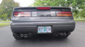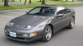 This 1991 Nissan 300ZX Twin Turbo is finished in Charcoal Pearl over Charcoal leather and is powered by a twin-turbocharged 3.0-liter V6 paired with a four-speed automatic transmission and a limited-slip differential. Equipment includes projector headlights, 17″ alloy wheels, Super HICAS four-wheel steering, removable glass roof panels, a rear spoiler, a rear wiper, automatic climate control, cruise control, a Kenwood CD stereo, and power windows.