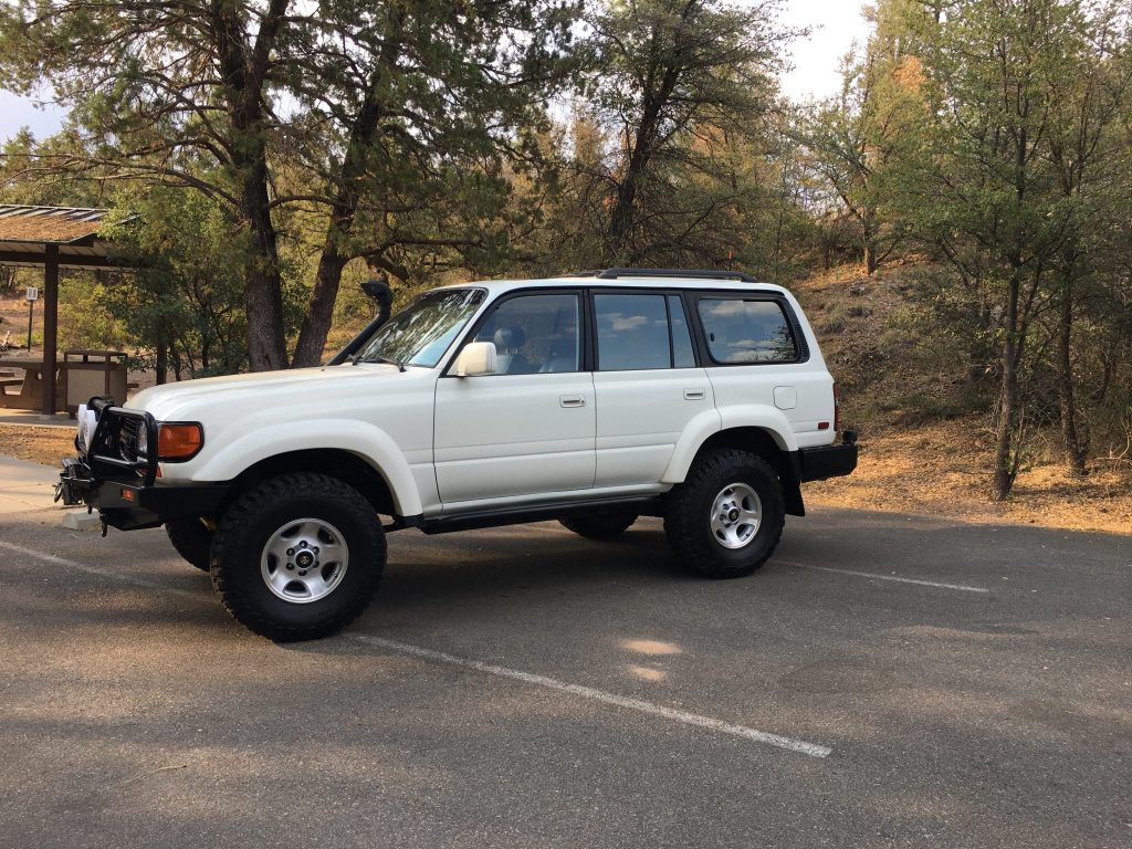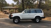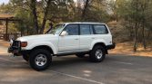 This 1993 Toyota Land Cruiser spent time in Washington State and Utah before its acquisition by the seller in 2020. The truck is finished in white over gray leather and is powered by a 4.5-liter inline-six paired with a four-speed automatic transmission, a dual-range transfer case, and locking front, center, and rear differentials. Additional equipment includes 16″ alloy wheels, a sunroof, a VHF radio, Old Man Emu shocks, an ARB front bumper and brush guard, a snorkel, third-row seating, air conditioning, power-adjustable front seats, cruise control, and a touchscreen Pioneer head unit.