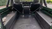 Aluminum body panels are finished in Coniston Green and accented by black wheel arch flares, and NAS models were equipped with a roll cage from the factory. Additional features include a front brush guard, side step bars, and a tubular rear bumper, and a receiver hitch. A rear plaque identifies this truck as #40 of approximately 2,000. The running boards, headlights, and soft tops were replaced in 2021.
