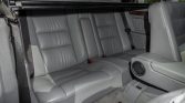 The four-passenger cabin is upholstered in gray leather (268) with burled walnut wood trim on the dashboard, center console, and door panels. Additional interior amenities include automatic climate control, cruise control, an AM/FM cassette stereo, an Active Bass loudspeaker system, power-adjustable heated front seats, seat belt presenters, Mercedes-Benz-branded floor mats, and power windows, mirrors, and locks.