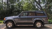 This 1994 Toyota Land Cruiser is said to have remained in the seller’s family since its purchase from Schaumburg Toyota of Schaumburg, Illinois, in 1994. The truck is finished in Blue Slate Metallic over gray leather and is powered by a 4.5-liter 24-valve inline-six paired with a four-speed automatic transmission, a dual-range transfer case, and three locking differentials. Additional equipment includes cruise control, a power-operated sunroof, air conditioning, a rear heater, keyless entry, remote start, and a Pioneer touch-screen stereo with navigation.