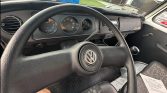 This 1994 Volkswagen Kombi was refurbished in Brazil before being imported to the US in March 2023. It is finished in white with orange vinyl wrapping on the lower half over black patterned upholstery and powered by an air-cooled 1.6L flat-four paired with a four-speed manual transaxle. Equipment includes 17″ aftermarket wheels, rack-and-pinion power steering, front disc brakes, right-side barn doors, a roof rack, three rows of bench seating, and an aftermarket head unit.