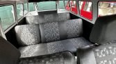 The rear cabin features two rows of bench seating trimmed in matching upholstery.