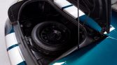 The bodywork is finished in Emerald Green Metallic (PGQ) with removable silver over-the-top stripe decals. Equipment includes fog lights, top and side hood vents, and a side-exit exhaust system with outlets ahead of each rear wheel. A body-color hardtop, removable window curtains, and a canvas soft top aLompany the sale. Imperfections in the finish include paint loss on the front air dam, wear on the rear window weather stripping, paint bubbling on the left rocker molding, and melted plastic and delamination of the paint protection film surrounding the side-exit exhaust outlets.