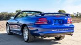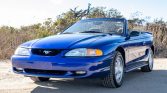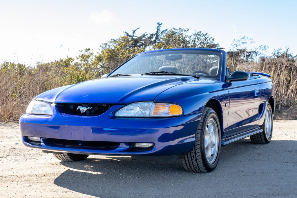 This 1995 Ford Mustang GT convertible is finished in Sapphire Blue Metallic over black cloth and is powered by a 5.0-liter V8 linked with a five-speed manual transmission and a Traction-Lok rear axle. Additional equipment includes factory 16″ wheels, a power-operated soft top, air conditioning, cruise control, and a factory AM/FM cassette stereo with an auxiliary CD player. Work under current ownership is said to have included replacement of the clutch and idle control valve.