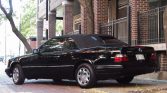 The car is finished in black and is equipped with a power-operated black soft top with a heated rear window. Other exterior details include headlight wipers, a power antenna, asymmetrical side mirrors, and a panoramic windshield wiper. The lower cladding and bumpers have been painted to match the body, aftermarket tint film covers the side and rear windows, and seven of the convertible top hydraulic cylinders are said to have been replaced within the past year.