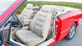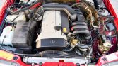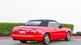 This 1995 Mercedes-Benz E320 cabriolet is finished in Imperial Red over Cream Beige leather and powered by a 3.2-liter inline-six paired with a four-speed automatic transmission. Equipment includes a black power-operated soft top, eight-hole 15″ alloy wheels, headlight wipers, heated front seats, automatic climate control, wood trim, and a factory cassette stereo with a trunk-mounted CD changer. A top cylinder was replaced in anticipation of the sale.