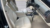 The interior features seats trimmed in beige leather upholstery (265A) along with matching carpeting and wood trim on the dash, center console, and doors. Amenities include power-adjustable and heated front seats, dual-zone climate control, a cassette stereo, power accessories, cruise control, and a car phone.