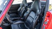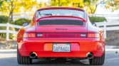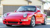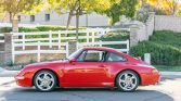This 1995 Porsche 911 Carrera coupe is powered by a 3.6-liter flat-six paired with a six-speed manual transaxle and a limited-slip differential, and it is finished in Guards Red over black leather. Modifications include a Steve Wong ECU chip, Euro-spec bumpers and side skirts, a Fister muffler, and Bilstein suspension components resulting in a lowered ride height. Alloy 18″ Turbo-Twist alloy wheels are mounted, and additional equipment includes integrated driving lights, power-operated front hardback sport seats, air…