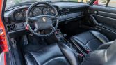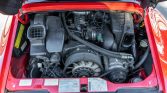 The car is finished in Guards Red (G1) and Euro-spec bumpers and side skirts were fitted and finished under previous ownership. Additional features include integrated front driving lights, black “Carrera” decklid badging, a rear window wiper, and dual exhaust outlets.