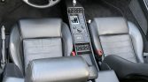 The sport seats are trimmed in black leather, and the cabin features a matching dash, carpeting, and door panels. Amenities include automatic climate control, a Kenwood CD stereo, a gated shifter, carbon and kevlar switchgear overlays, power windows, drilled aluminum pedals, floor mats, and custom-fabricated speaker housings located behind the seats.