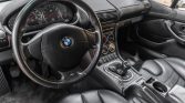 This 2000 BMW M Coupe is finished in black over black Nappa leather upholstery and is powered by a 3.2-liter inline six mated to a five-speed manual transmission and a limited-slip differential. Additional equipment includes 17″ Style 40 wheels, a Racing Dynamics front strut-tower brace, a Dinan exhaust system, a sunroof, cruise control, air conditioning, heated and power-adjustable seats, and a factory Harman Kardon audio system.