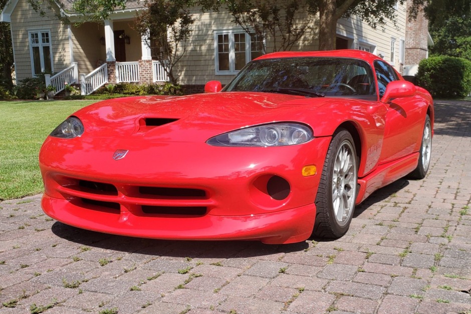 This 2000 Dodge Viper GTS is one of 218 ACR examples produced for the model year, and it is finished in Viper Red over black leather. Power is provided by an 8.0-liter V10 paired with a six-speed manual transmission and a limited-slip differential. Features include a vented hood, 18″ ACR-specific wheels, a racing-style fuel filler door, centrally mounted twin exhaust outlets, a Viper-logo third brake light, air conditioning, an Alpine CD stereo system, ACR-branded seat harnesses, power…