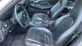 The cabin features seats upholstered in black supple leather, and the matching carpets are protected by Porsche-branded floor mats. Amenities include the automatic climate control, cruise control, power windows and locks, the Hi-Fi Sound Package with a remote CD changer, and a carbon fiber-accented handbrake lever and shift knob.