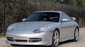 This 2000 Porsche 911 Carrera coupe is finished in Arctic Silver Metallic over black leather and is powered by a 3.4-liter flat-six mated to a five-speed Tiptronic automatic transaxle. Additional equipment includes Aerokit bodywork, rear bumper side fins, stainless-steel tailpipes, 18″ turbo-look wheels, Litronic headlamps, power-adjustable heated front seats, a body-color center console, and aluminum-look instrumentation.
