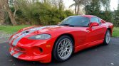 This 2001 Dodge Viper GTS ACR coupe is finished in Viper Red with silver stripes over black leather and is equipped with the ACR Competition Group, which included upgraded suspension components, 18″ BBS wheels, five-point harnesses, and low-restriction air cleaners. Power is provided by an 8.0-liter V10 mated to a six-speed manual transmission and a limited-slip differential, and additional equipment includes KW coilovers, air conditioning, and an aftermarket Pioneer stereo.