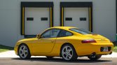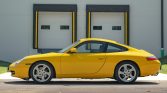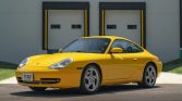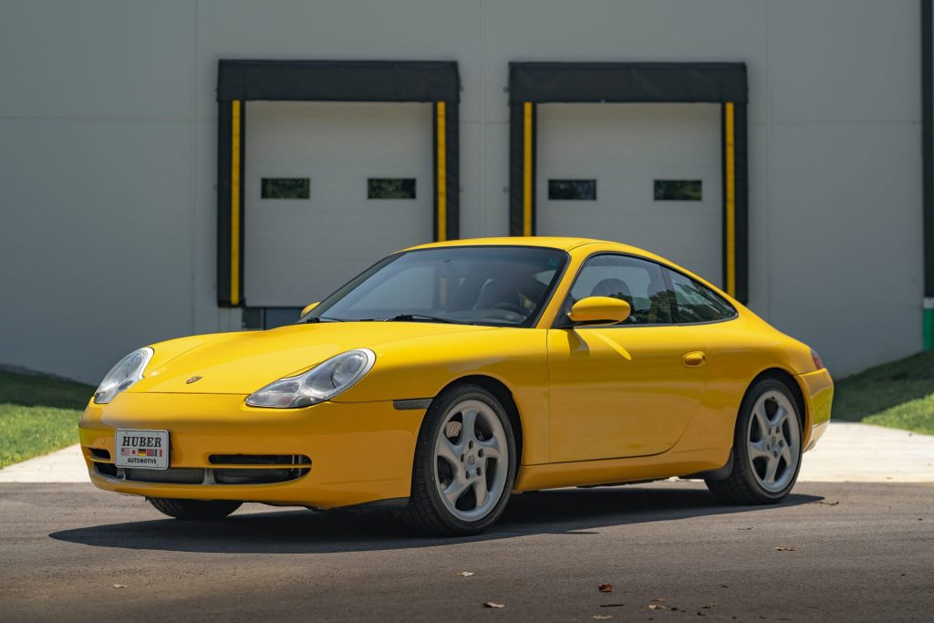 This 2001 Porsche 911 Carrera coupe is finished in Speed Yellow over black leather and is powered by a 3.4-liter flat-six paired with a six-speed manual transaxle. Equipment includes 18″ wheels, Porsche Stability Management, a retractable rear spoiler, integrated fog lights, a sunroof, a Kenwood CD and Bluetooth-enabled stereo, automatic climate control, and cruise control.