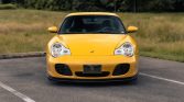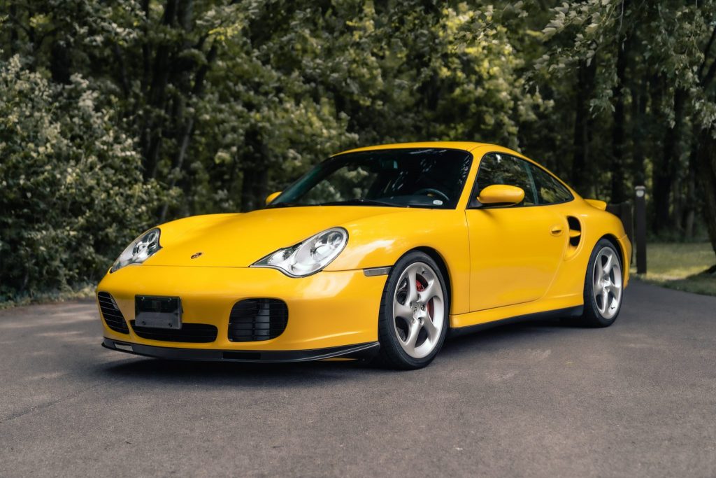 This 2001 Porsche 911 Turbo is finished in Speed Yellow over black full leather and is powered by a twin-turbocharged 3.6L flat-six mated to a six-speed manual transaxle and all-wheel drive. Equipment includes an electric sunroof, 18″ Turbo Twist wheels, heated hard-back sports seats, carbon-fiber cabin trim, and Porsche Communication Management with navigation. Recent service is said to have involved an oil change and replacement of a lift valve solenoid, the alternator, and the front trunk shocks.