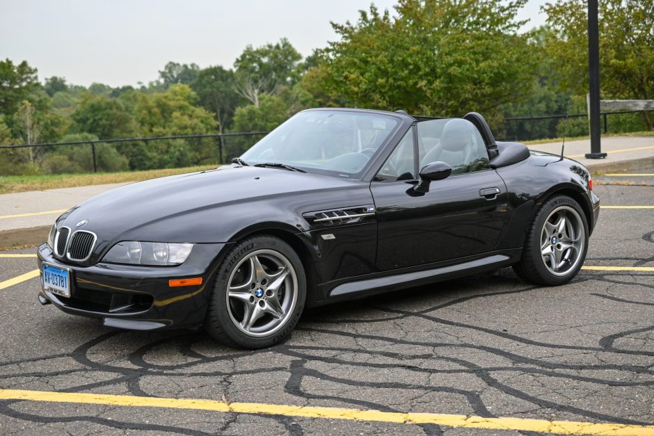 This 2002 BMW M Roadster is powered by a 3.2-liter S54 inline-six paired with a five-speed manual transmission and finished in Black Sapphire Metallic over black Nappa leather. Equipment includes a limited-slip differential, 17″ RoadStar wheels, heated sport seats, air conditioning, and a Harman Kardon sound system. The car was first registered in Illinois and spent time in Ohio, Virginia, and Maine prior to the seller’s purchase in 2019. It now has 29k miles, and service has included replacement of the battery, sway bar links, the thermostat, gaskets, seals, and the tires.
