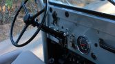The interior features Bestop heated bucket seats upholstered in gray cloth joined by a body-color steel dash and floors coated in POR-15. A Pioneer AM/FM/CD head unit is installed within the lockable center console and is connected to overhead Sony speakers.