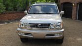 This 2002 Lexus LX470 is finished in beige and gray over Ivory leather and is powered by a 4.7-liter V8 paired with a four-speed automatic transmission, a dual-range transfer case, and a locking center differential. Additional equipment includes 20″ wheels, Adaptive Variable Suspension, Adjustable Height Control, fog lights, power-adjustable and heated front seats, third-row seating, and a Mark Levinson premium audio system.