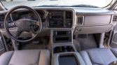 This 2003 Chevrolet Silverado 2500HD LT 4×4 pickup is powered by an 8.1-liter Vortec V8 linked with a five-speed automatic transmission, a dual-range transfer case, and a locking rear differential. The truck is finished in Light Pewter Metallic over Medium Gray leather, and features include fog lights, cab lights, extending tow mirrors, a receiver hitch, 16″ five-spoke alloy wheels, heated power-adjustable front bucket seats, a rear bench, a Bose sound system, cruise control, a CD stereo, and automatic…