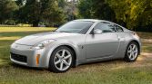 This 2003 Nissan 350Z Touring coupe was delivered new to Hubert Vester Nissan in Clinton, North Carolina, and was acquired by the seller in July 2020. It is finished in silver over gray leather upholstery and is powered by a 3.5-liter V6 paired with a six-speed manual transmission and a limited-slip differential. Features include automatic climate control, xenon headlamps, power-operated and heated seats, and a Bose cassette stereo and six-disc CD changer. The tires were reportedly replaced…