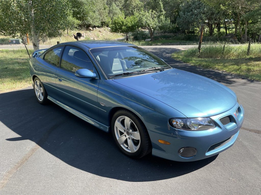 This 2004 Pontiac GTO is fitted with a Magnuson supercharger kit, and it is finished in Barbados Blue Metallic over black leather upholstery. Power is provided by a 5.7-liter LS1 V8 that is managed by revised ECU tuning and is linked with a six-speed manual transmission and a limited-slip differential. Additional equipment includes body-color SAP grilles, a skip-shift eliminator, 17″ five-spoke alloy wheels, fog lights, a rear spoiler, power-adjustable front seats, a CD stereo, cruise control, and air conditioning.