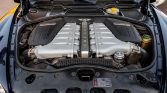 This 2005 Bentley Continental GT is finished in dark blue over cream leather and is powered by a twin-turbocharged 6.0-liter W12 paired with a six-speed automatic transmission and all-wheel drive. Equipment includes headlight washers, 19” wheels, heated and power-adjustable front seats, dual-zone automatic climate control, a navigation system, wood trim, and paddle shifters.