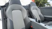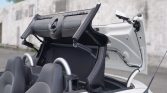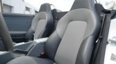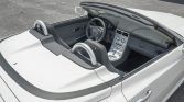 The car is finished in Alabaster (P61) and features a power-operated black soft top, an active rear spoiler, fog lights, fender vents, power-adjustable heated side mirrors, silver roll hoops, and dual center-exit exhaust outlets.