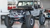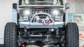Beadlock-capable 17″ Trail Ready wheels are mounted with 40×13.50″ Goodyear Wrangler MT/R tires. A custom multi-link suspension setup by Poly Performance has been installed, and it is paired with Fox Racing remote-reservoir adjustable coilovers and hydraulically dampened bump stops. A Howe hydraulic power-steering system has also been installed, and the truck is further equipped with manually locking front hubs and upgraded four-wheel disc brakes.