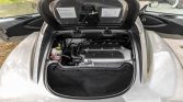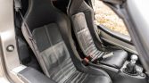 The cabin features fixed-back bucket seats with black leather upholstery and black carpeted mats that protect the front footwells. In addition to leather upholstery, the Touring Pack added power windows and extra sound insulation. Additional equipment includes air conditioning, push-button ignition, and a Blaupunkt Acapulco MP54 stereo. The seller notes that a carbon-fiber center console cover was installed under current ownership.