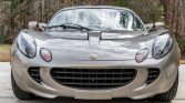 This 2005 Lotus Elise is powered by a mid-mounted 1.8-liter inline-four paired with a six-speed manual transaxle and is finished in silver over a black leather interior. Equipment includes a body-color removable roof panel, the Touring Pack, 16″ and 17″ alloy wheels, fixed-back bucket seats, air conditioning, and a Blaupunkt stereo.