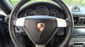 Optional 19″ Carrera Classic alloy wheels feature Porsche-crest center caps and wear staggered-width Hankook Ventus V12 evo2 tires. The car is equipped with Porsche-branded calipers and cross-drilled rotors at all four corners, and a brake fluid flush was recently carried out.