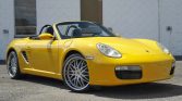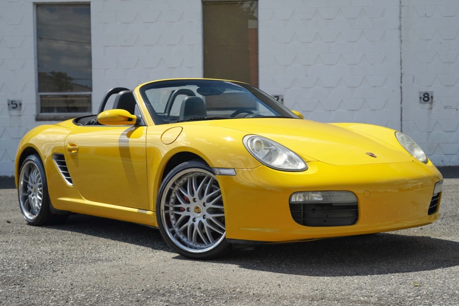 This 2005 Porsche Boxster is finished in Speed Yellow over a black leather interior and is powered by a 2.7-liter flat-six paired with a five-speed manual transaxle. Features include a black soft top, integrated fog lights, automatic climate control, heated seats, an AM/FM/CD stereo, and power mirrors, windows, and door locks. The car was delivered new to Checkered Flag Porsche/Audi of Virginia Beach, Virginia and spent time in Florida and South Carolina prior to acquisition by the…