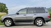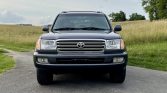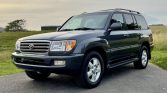 This 2005 Toyota Land Cruiser is finished in Galactic Gray Mica over gray leather and powered by a 4.7-liter V8 paired with a five-speed automatic transmission, a dual-range transfer case, and a locking center differential. Additional equipment includes 18″ wheels, a sunroof, a roof rack, a receiver hitch, navigation, a rear entertainment screen, automatic climate control, and a JBL audio system with a six-CD and DVD changer. The truck was sold new by Beltway Toyota in Temple Hills, Maryland and later moved to Tennessee, where it was acquired by the seller in March 2021. Subsequent service has since included changes of the timing belt, water pump, and engine oil.