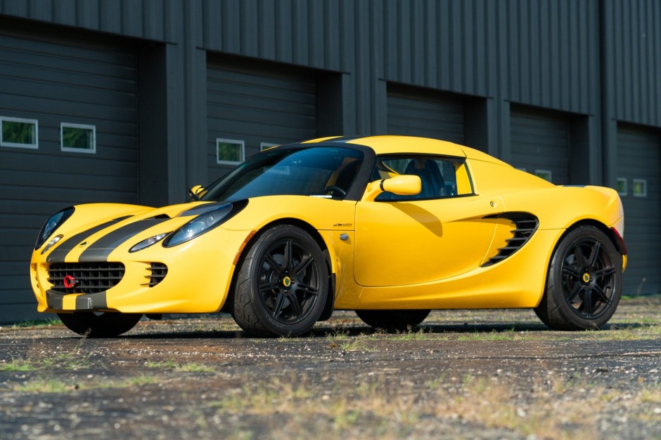 This 2006 Lotus Sport Elise was initially registered in California and spent time in Oklahoma before being acquired by the seller in 2021 and relocated to Ohio. The car is #16 of 50 Sport Elises delivered to North America for the model year and is finished in Saffron Yellow with twin Storm Gray stripes over a black and yellow interior. Power is supplied by a Toyota-sourced 1.8L inline-four paired with a six-speed manual gearbox, and the car…