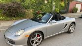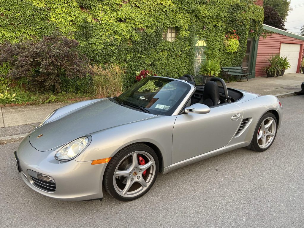 This 2006 Porsche Boxster S is finished in Arctic Silver over black leather and powered by a 3.2-liter flat-six paired with a six-speed manual transaxle. Equipment includes a power-retractable black soft top, xenon headlights, 19” wheels, heated seats, and a Bose sound system.