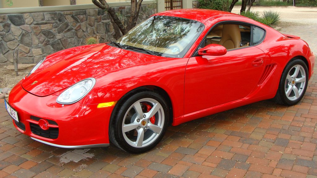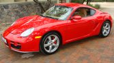 This 2006 Porsche Cayman S is finished in Guards Red over Sand Beige leather and is powered by a 3.4-liter flat-six paired with a six-speed manual transaxle. Additional equipment includes a Porsche CDR24 stereo, power-adjustable sport seats, bi-xenon headlights, fog lights, Eibach 10mm rear wheel spacers, and 18″ Cayman S wheels.