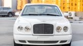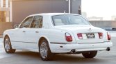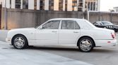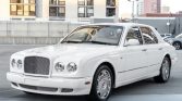 This 2007 Bentley Arnage R is finished in Glaicer White over Cotswold leather upholstery and is powered by a twin-turbocharged 6.75-liter V8 mated to a six-speed automatic transmission. Amenities include a power-operated sunroof, dual-zone automatic climate control, power-adjustable heated front and rear seats, parking sensors, xenon headlights with washers, and 19″ alloy wheels.