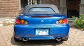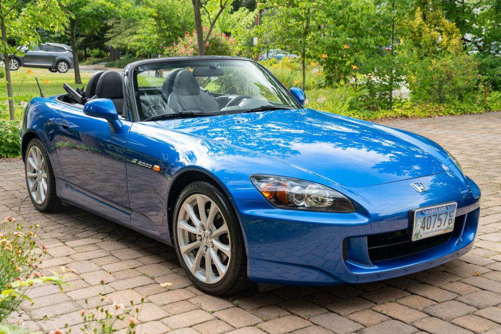 This 2007 Honda S2000 is finished in Laguna Blue Pearl over black leather, the car is powered by a 2.2-liter VTEC inline-four linked with a six-speed manual transmission and a limited-slip differential. Equipment includes 17″ ten-spoke wheels, a black convertible soft top, xenon headlights, air conditioning, a CD stereo, and cruise control.