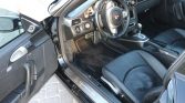 The cabin features seating upholstered in black leather with matching carpets, and satin silver trim accents the dash, center console, and door panels. Amenities include front seats with partial power adjustment, a thicker steering wheel rim, cruise control, a dash-mounted chronograph, automatic climate control, and PCM with navigation.