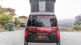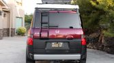 The body is finished in burgundy with black plastic accents on the front and rear quarter panels. Equipment installed by the seller includes an Ursa Minor Vehicles pop-up ECamper conversion, a Yakima roof rack and basket, a Gobi ladder, aftermarket dual-beam xenon H4 headlights, HID fog lights, LED reverse lights, a back-up camera, WeatherTech wind deflectors, an insect deflector, and a receiver hitch. The cabin has been lined with Stinger and Focal BAM XXL sound deadening material and tint film has been applied to the windows. The Carfax report lists damage as a result of a rear-end collision in 2012, “minor” damage to the rear in 2016, “minor” damage to the front in 2018, damage in August 2021, and that the car was declared a total loss in August 2018.