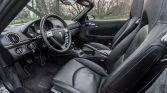The cabin features heated seats upholstered in black leather along with a matching dashboard and carpets. Amenities include a Bose sound system as well as a wind deflector, automatic climate control, and cruise control.